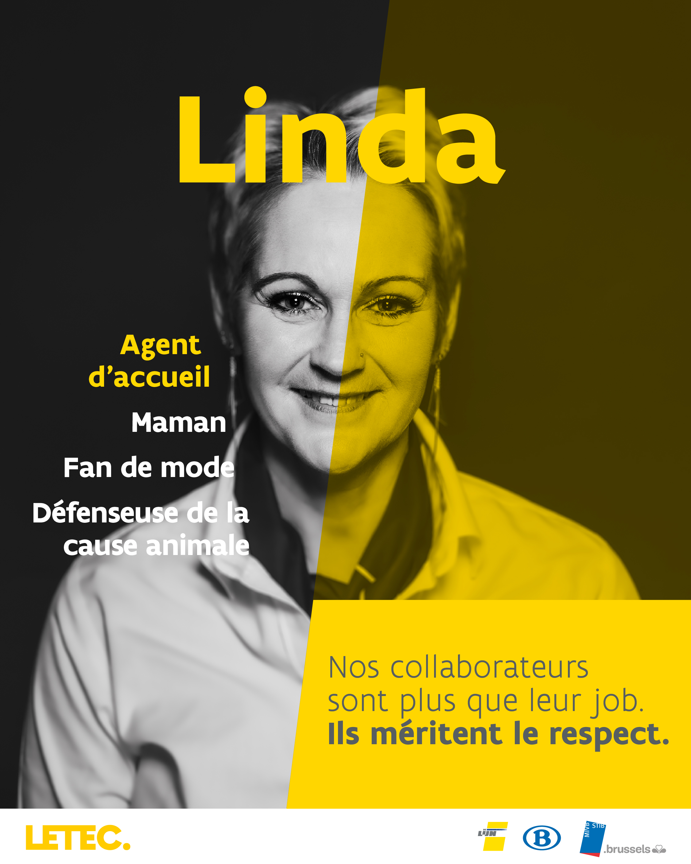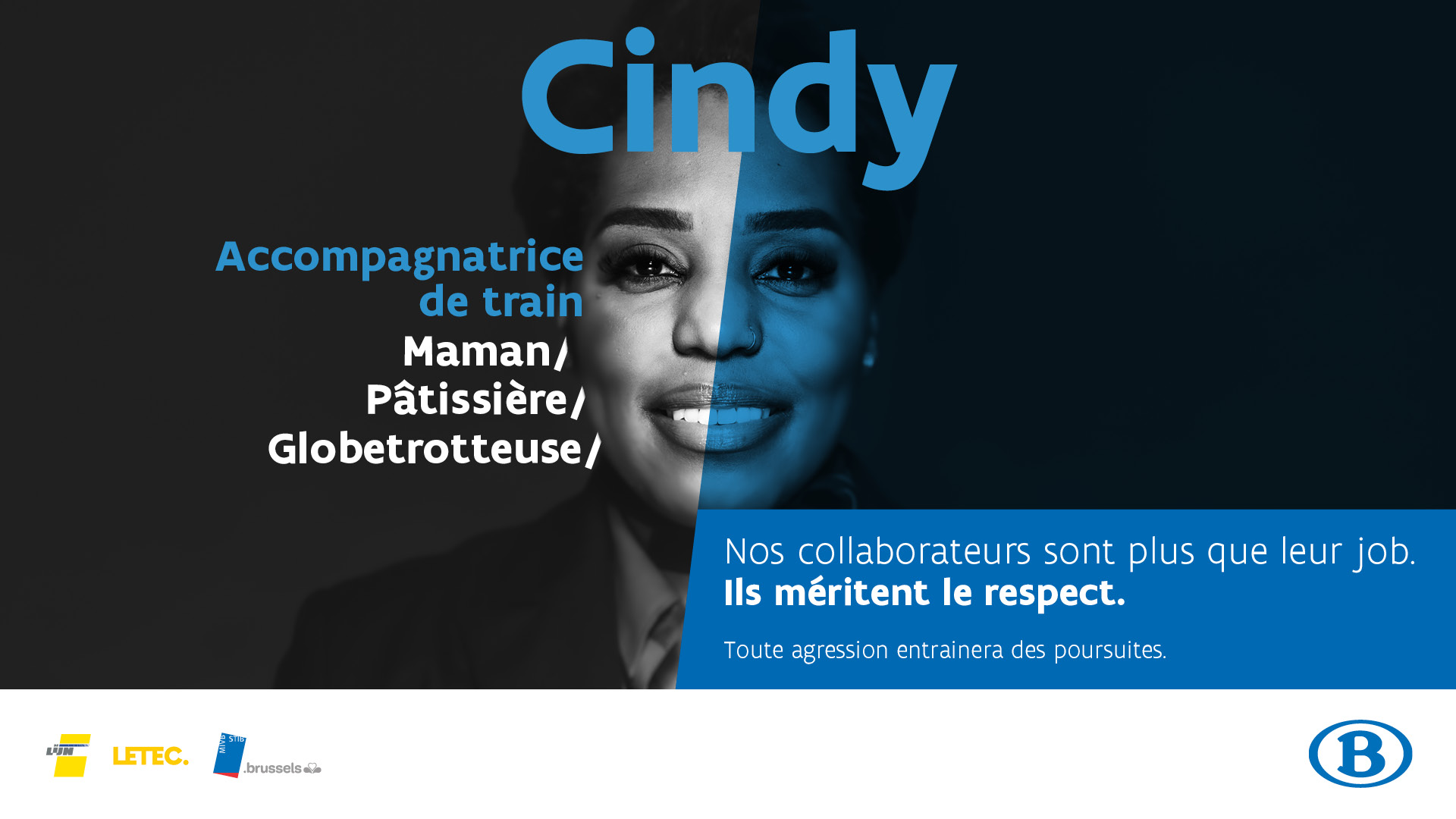 Lancée à l’occasion de la journée internationale de la tolérance le 16 novembre, la campagne met en lumière douze collaboratrices et collaborateurs des différents opérateurs ayant été confronté(e)s à des agressions dans le cadre de leur fonction. Elle met en avant les visages qui se cachent derrière ces chiffres. Car, en dehors de leur travail, ces personnes sont aussi parent, grand-parent, frère ou sœur, meilleur(e) ami(e) de quelqu'un, maître-nageur ou entraîneur de foot. Et le respect qu’on leur porte pour cela, ils le méritent aussi dans leur travail.